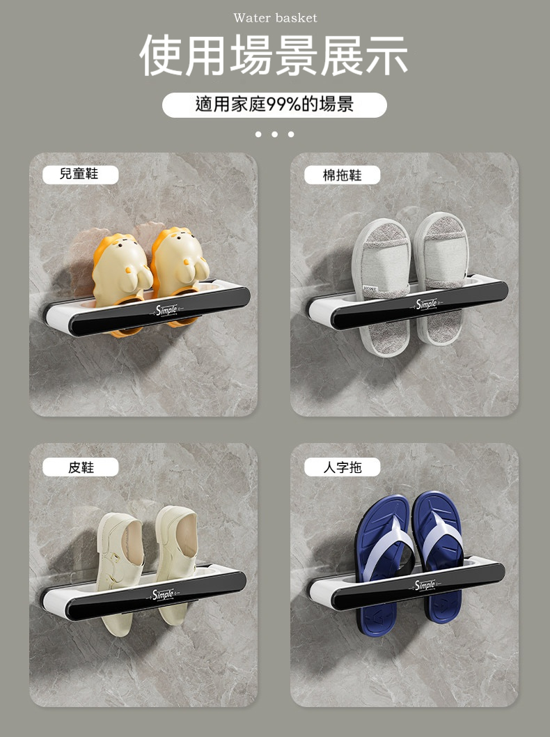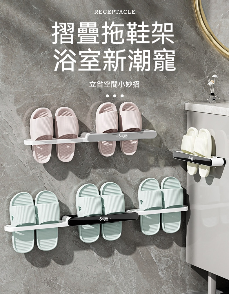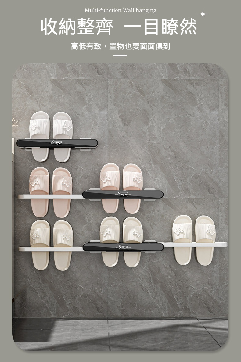 免打孔安裝,不傷牆面,隨貼即用👍快速瀝水設計,告別霉味💧可折疊超省空間,門後、牆角都能貼🚪✨ 堅固承重,多雙拖鞋掛放也穩穩噠💪 小空間救星 🏷️多場景適用,浴室廚房都能用🌷告別髒亂,輕鬆打掃